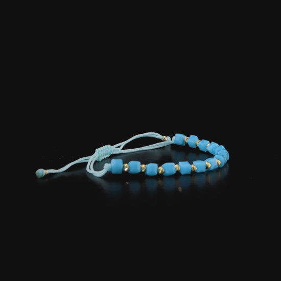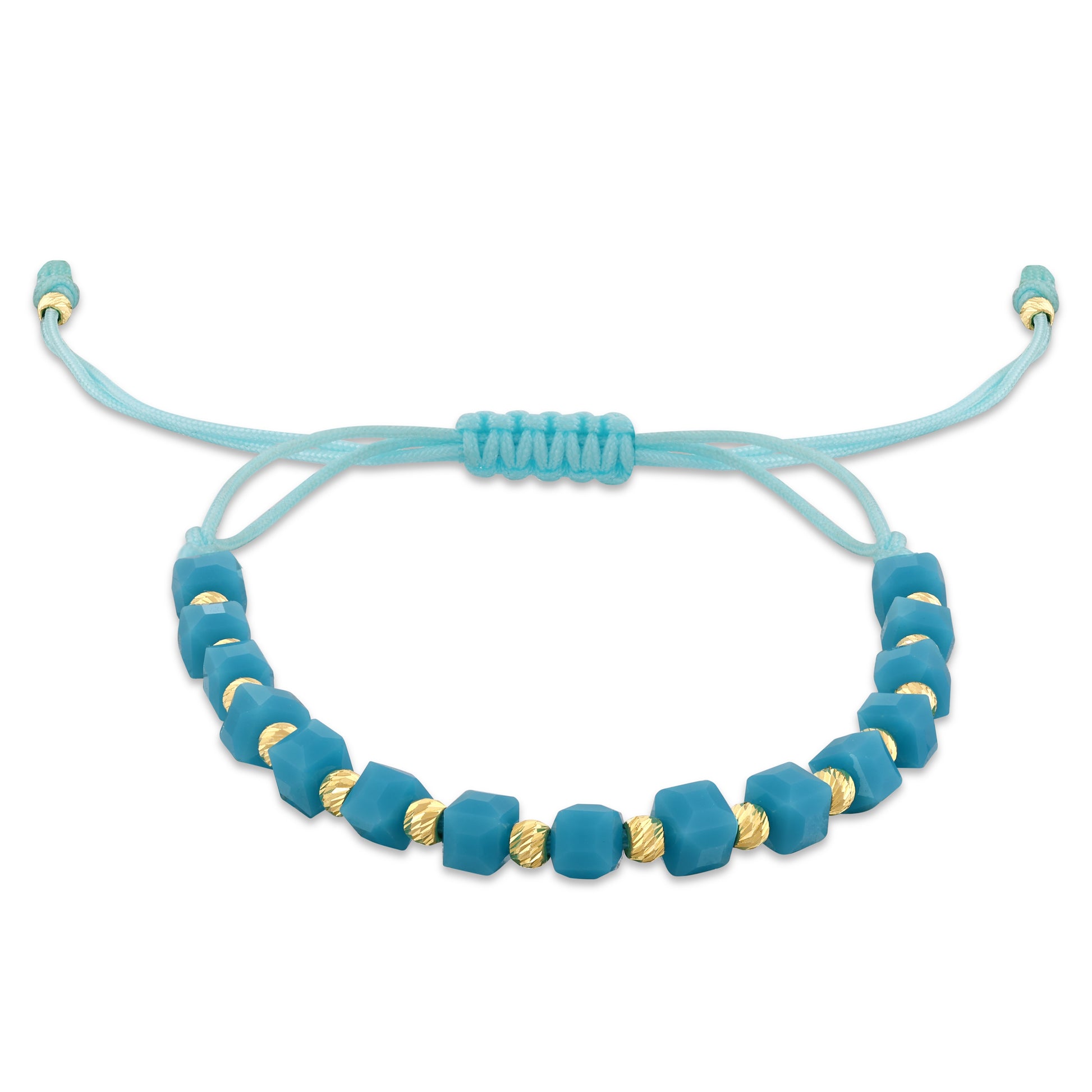 Derin deniz mavisi küp taşlarla tasarlanan bu özel bileklik, 14 ayar altın dorika toplarla zenginleştirilmiş ve çift katlı dayanıklı ipe el işçiliğiyle örülmüştür. Ayarlanabilir yapısı sayesinde ip uçları nazikçe çekilerek her bileğe kolayca uyum sağlar. Derin mavi tonun sakin ama güçlü enerjisi, altın detaylarla buluşarak modern ve sofistike bir stil sunar.